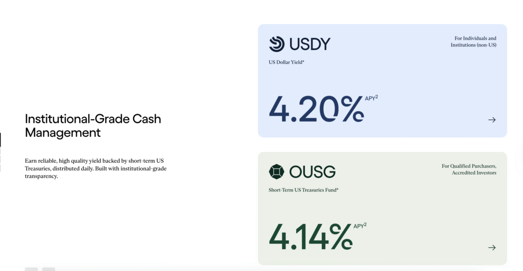 Ondo Finance, Arbitrum’da USDY adlı tokenize edilmiş bir stablecoin vasıtasıyla ABD Hazine Bonoları ve banka mevduatlarına dayalı sabit getirili ürünler sunar.